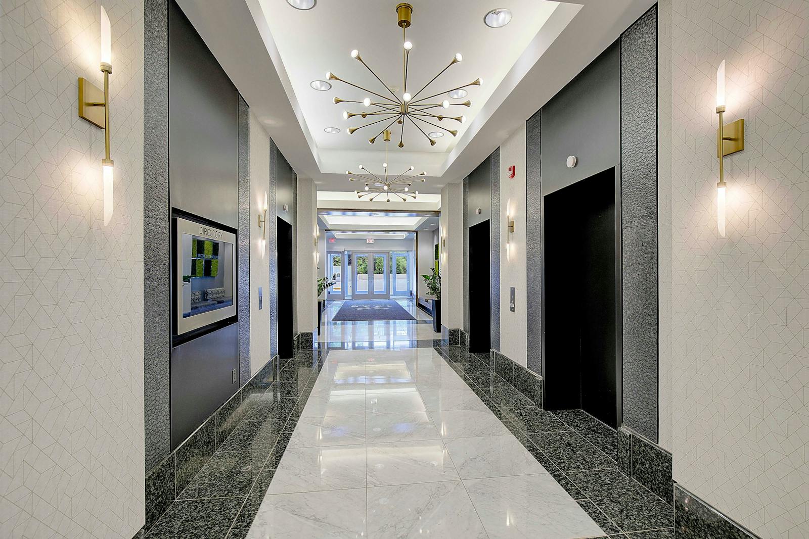 GTM’s extensive renovation of 1775 Wiehle Ave included the creation of two newly designed spec suites. The suite entries were redesigned with frameless, full glass doors and sleek ladder pull hardware, and each incorporate conference rooms, break rooms, open and closed offices, print areas and storage spaces. The 2,300 sf and 2,500 sf spec suites share the building’s 2nd floor with 3,200 sf of amenity spaces, including a new Town Hall Lounge with catering area and an updated elevator lobby. The neutral and contemporary color palette utilized throughout the suites is complemented with wood millwork for added warmth.