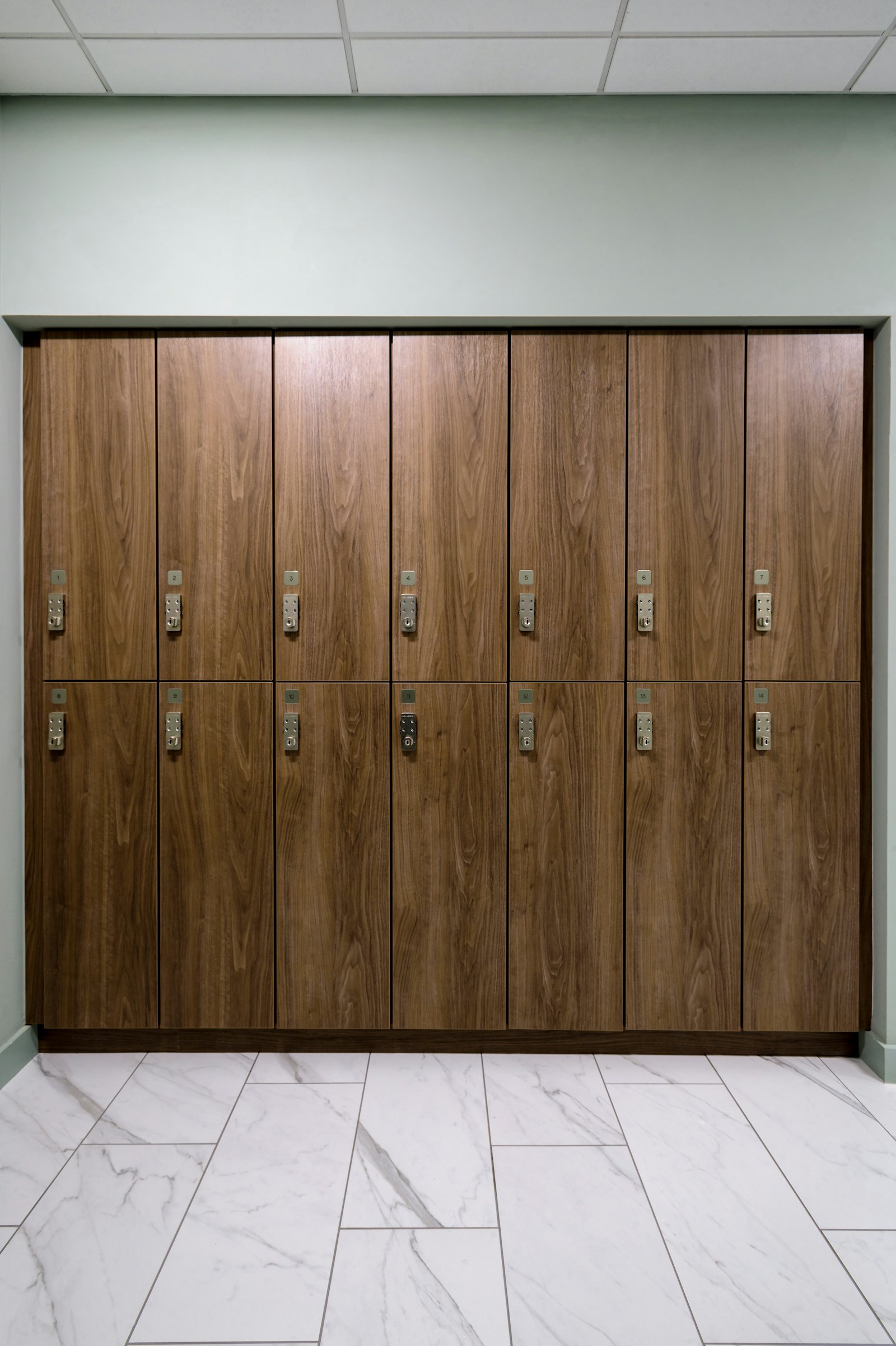 The main entrance opens up the newly modernized lobby. The renovation accomplished the removal of heavy red stone from the floor and wall surfaces, and lightened up the entire space to make it more welcoming. This updated lobby area also provides access to the new lounge, conference center and fitness center. These fresh amenities, each a great benefit for the tenants’ use, are tied together in the design by neutral wood tones with high-contrasting textiles and wall finishes.