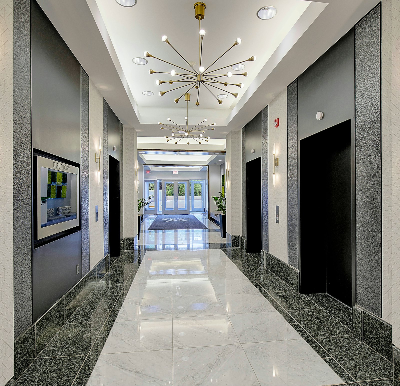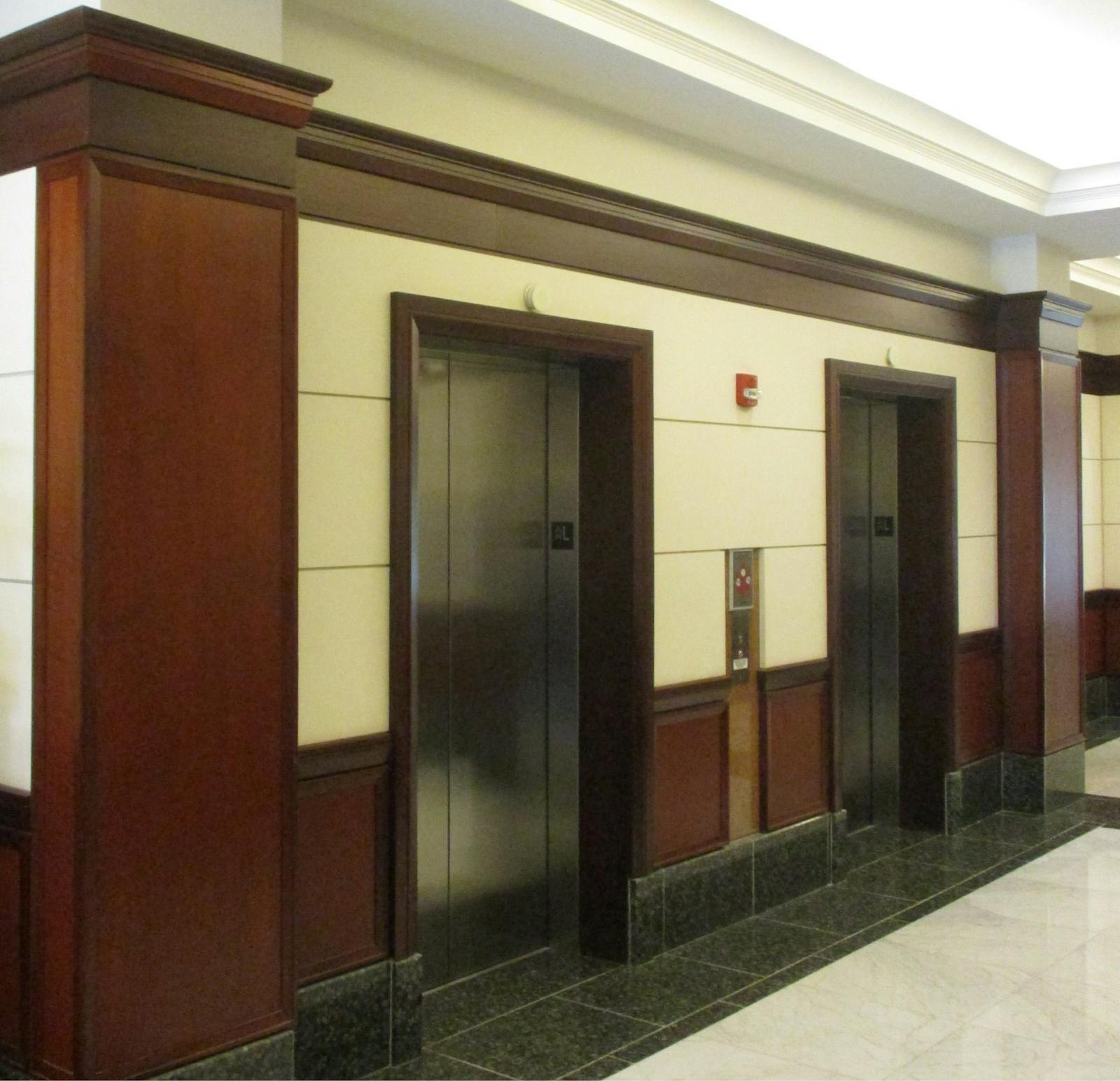 GTM’s extensive renovation of 1775 Wiehle Ave included the creation of two newly designed spec suites. The suite entries were redesigned with frameless, full glass doors and sleek ladder pull hardware, and each incorporate conference rooms, break rooms, open and closed offices, print areas and storage spaces. The 2,300 sf and 2,500 sf spec suites share the building’s 2nd floor with 3,200 sf of amenity spaces, including a new Town Hall Lounge with catering area and an updated elevator lobby. The neutral and contemporary color palette utilized throughout the suites is complemented with wood millwork for added warmth.