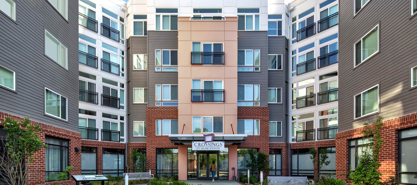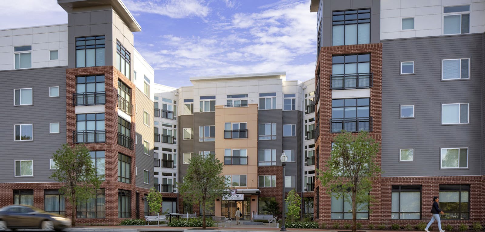 Inspired by the City of Gaithersburg’s architectural and railroad heritage, the design features two prominent towers on the street façade that frame the entrance plaza and create a gateway to Olde Towne. Projecting bays with large glazed openings and accent colors define the building’s corners, adding depth and visual interest. The design respects its historic context while introducing a strong architectural presence that reinforces the character and identity of the district.