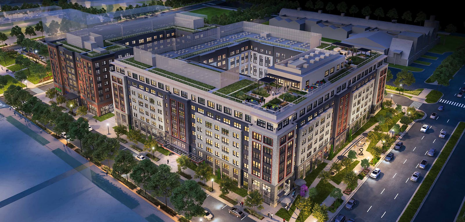 Corner towers mark a prominent entry into Hill East, while landscaped roof terraces and a penthouse lounge frame sweeping views to the U.S. Capitol to the Anacostia River. Together, these features establish the project as both a landmark and a gathering place—enhancing daily life while celebrating the neighborhood’s identity and future potential.