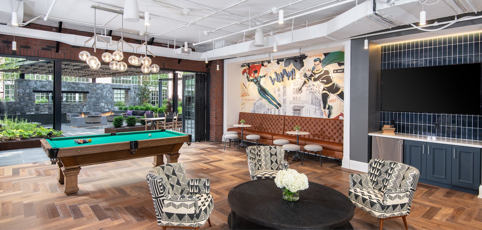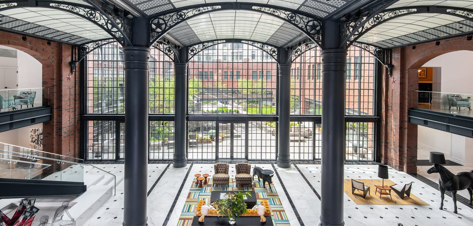 At Park Kennedy, the interiors are designed to delight and engage, with each space offering a distinct experience. The two-story atrium at the heart of the building, reminiscent of a 19th-century European train station, fills the space with light and grandeur while leading residents through intimate lounges, corridors, and gathering areas.