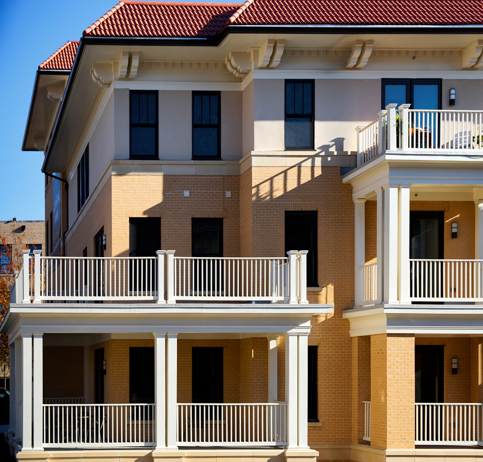 The multifamily buildings are designed as traditionally detailed three-story wood structures, their rich material palette adding texture, depth, and visual interest. Residents enjoy a full suite of amenities, including a community room, fitness center, bike storage, and an expansive rooftop with lounge seating, fire pit, and grilling areas—spaces that foster connection and elevate daily life.